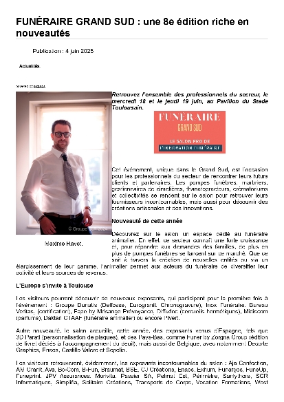 https://www.resonance-funeraire.com/magazine/evenements/7450-funeraire-grand-sud-une-8e-edition-riche-en-nouveautes.html 16 janv. 2026